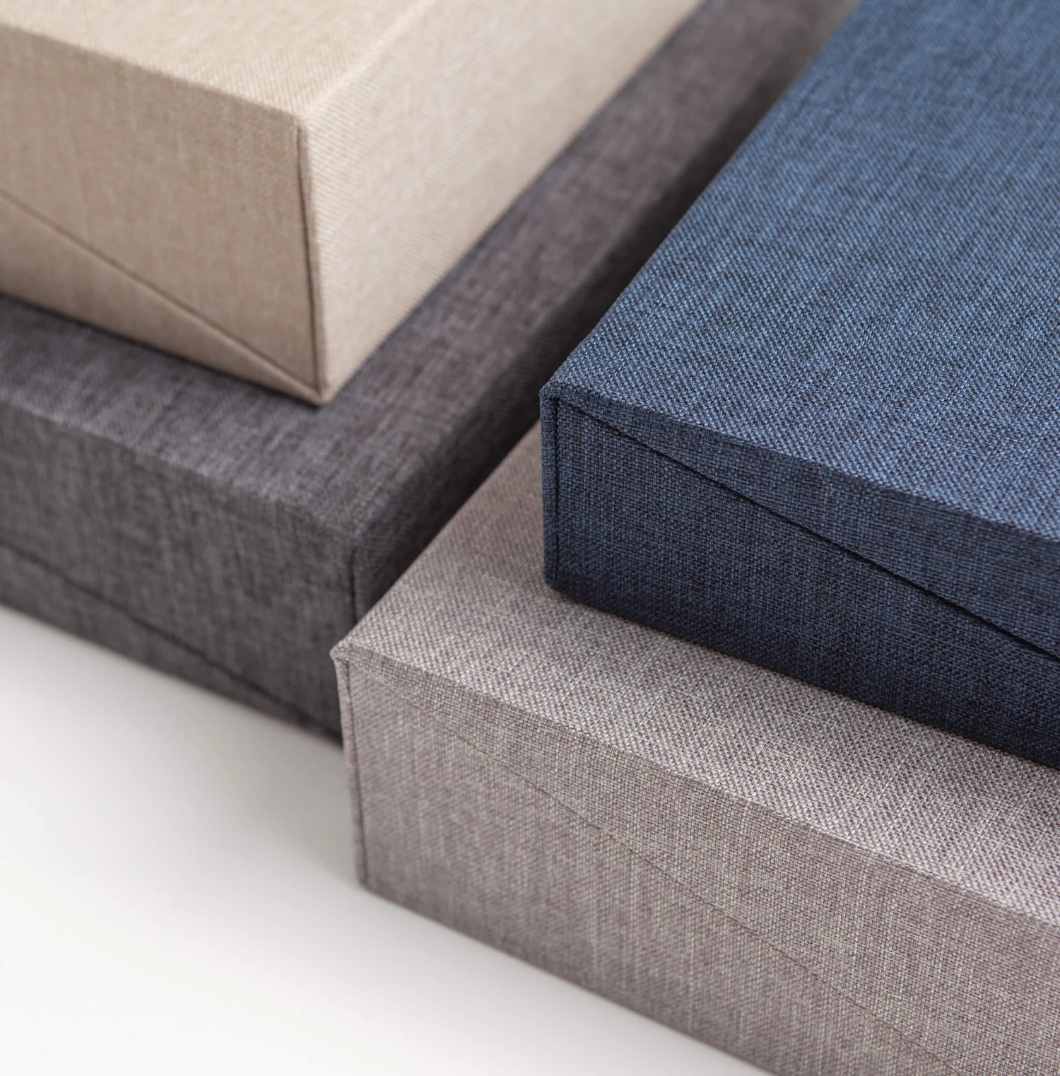 • Choose from animal-friendly vegan leathers or luxurious linen cover options.