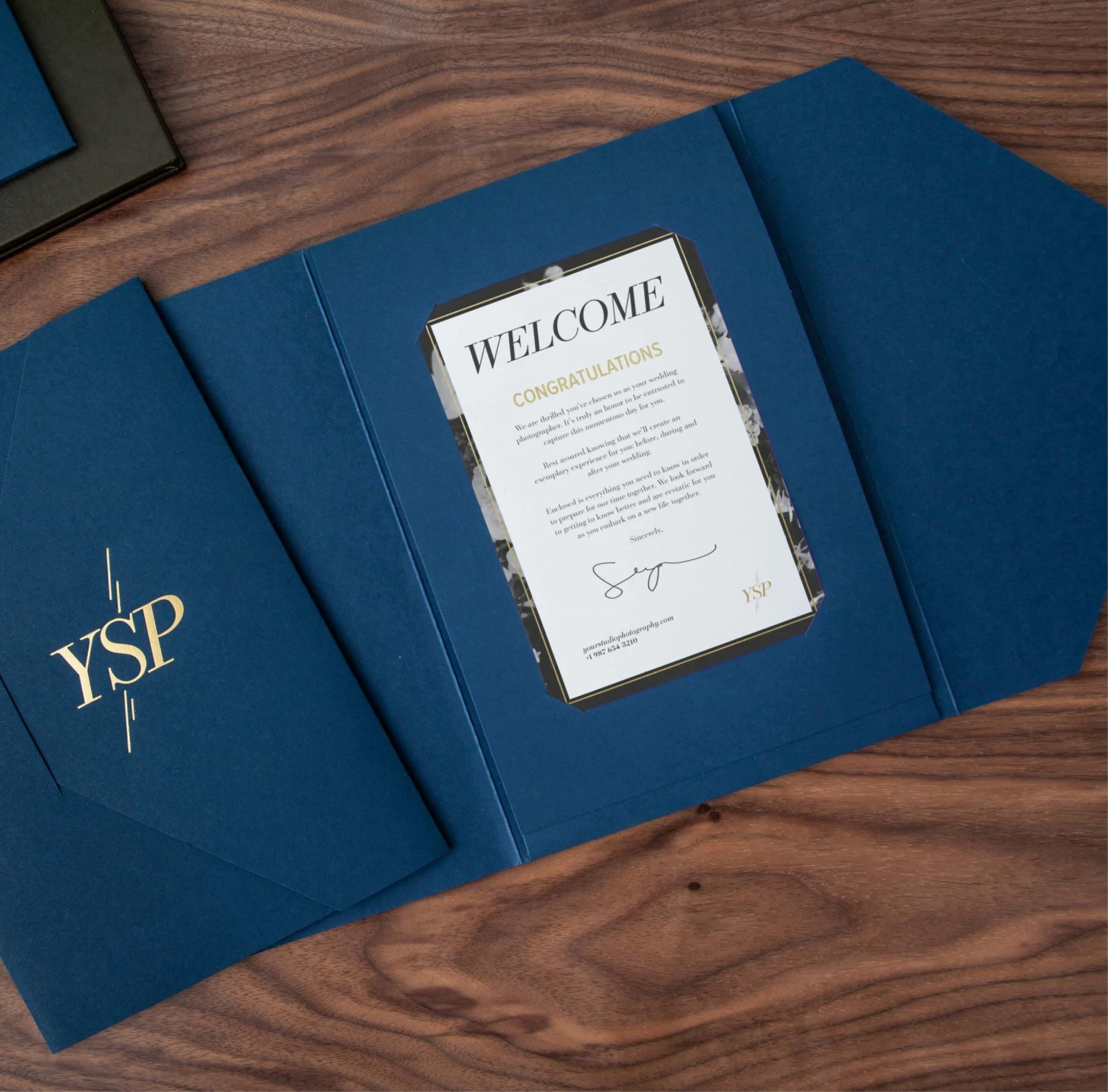 • Welcome Card – 4×6 in, 2-sided flat card with specialty message
