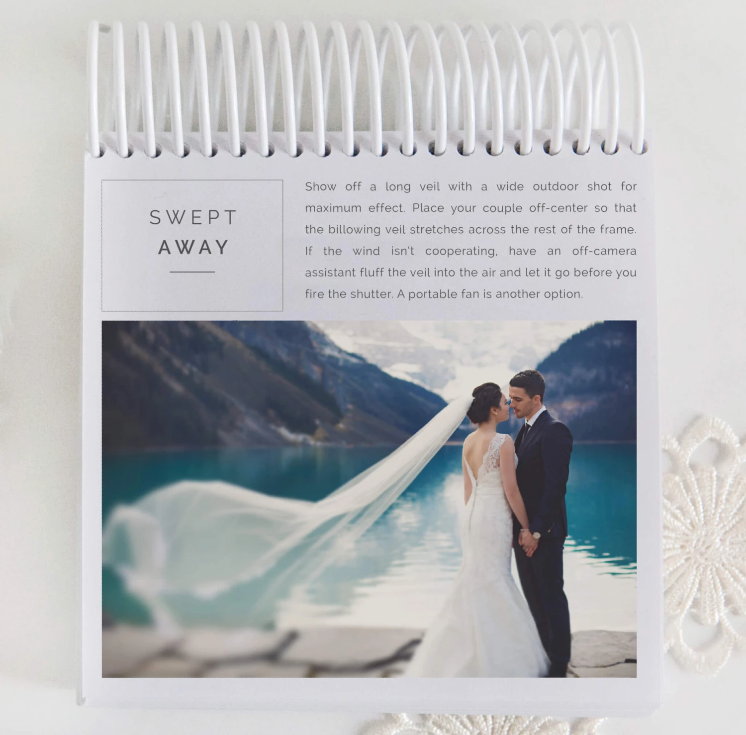 It’s a Time Saver: With a literal pocketful of inspiration, your bride and groom shoots move along quickly and the day is captured effectively. And with just the right amount of enthusiasm, your shots become perfection. Save the hassle and time of compiling new and inventive poses for every wedding – with 75 to serve as inspiration, the bride and groom combinations are virtually endless.
