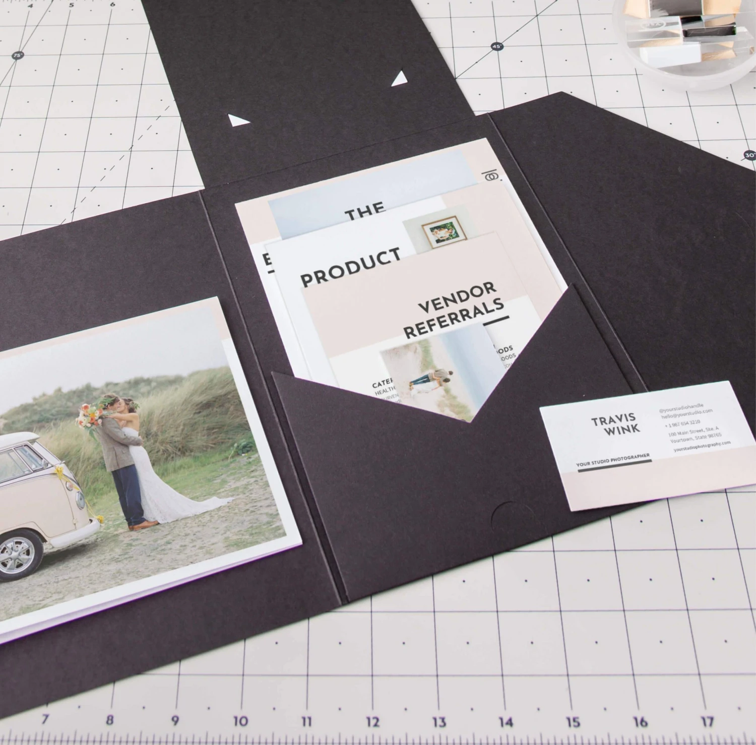 ⢠Product Guide – 7×5 in, 4-panel, 2-sided folded card with pre-sized product mockups