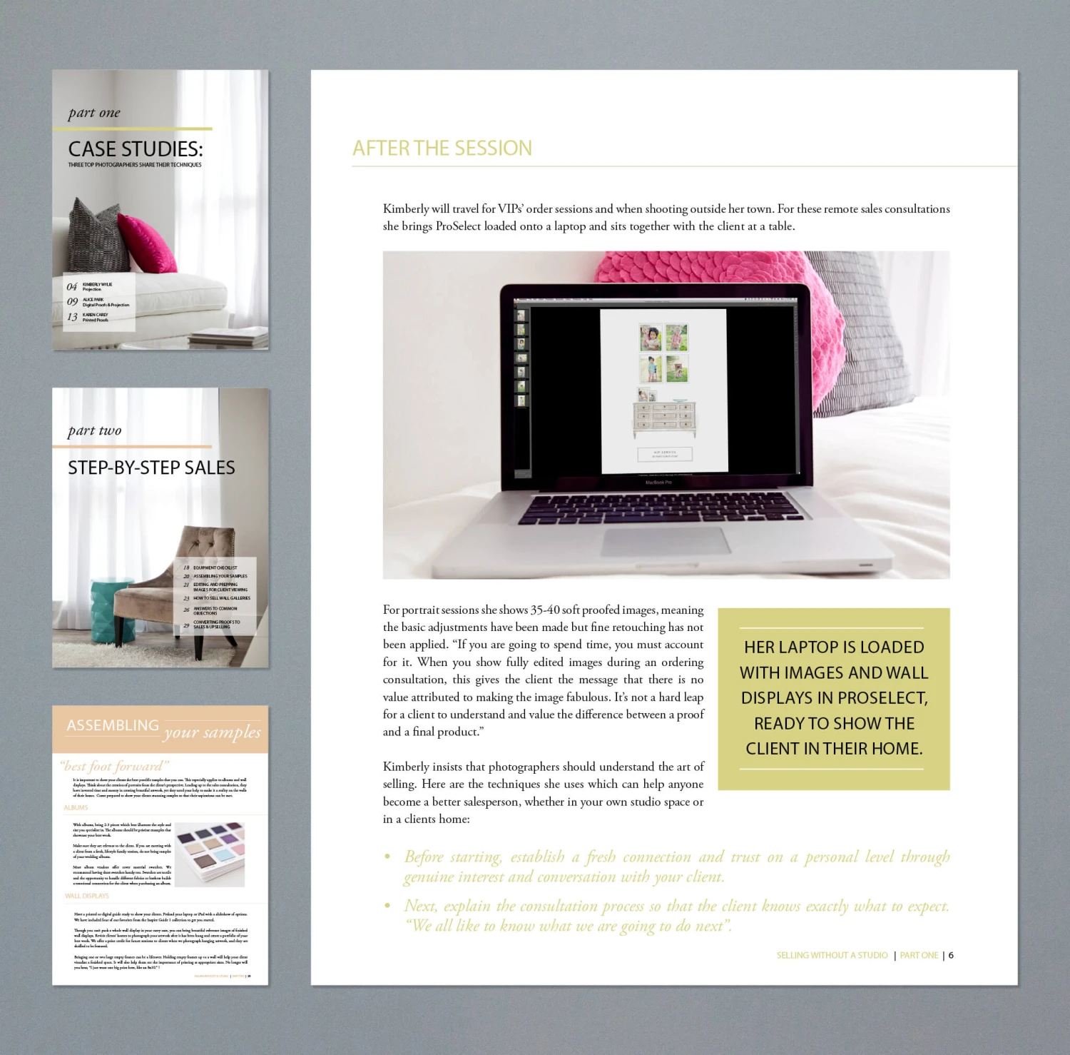 In-depth case studies show exactly how to make the most of real-life sales scenarios using software, proofing and equipment combinations, whether your sales consultation is in a client’s home, a local meeting spot, or a home-based studio.