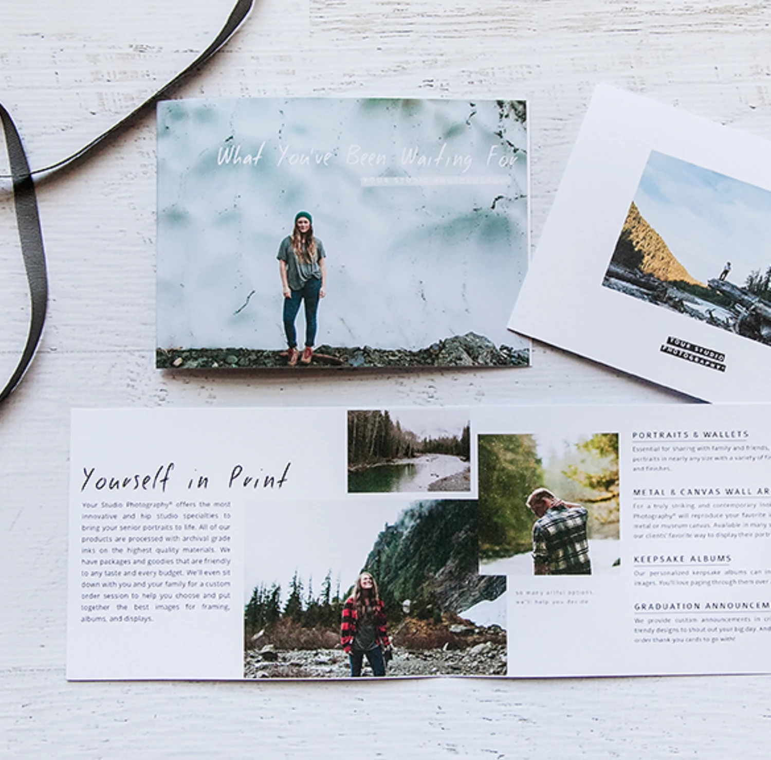• Marketing Card with current studio promo (4×5.5 flat card)
