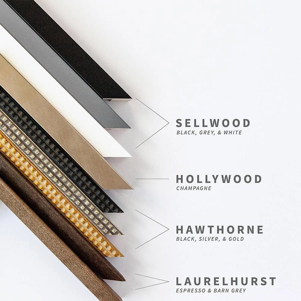 Sellwood: Face Width ¾” and Face Depth 1 1/8” (Grey) and 1 3/16″ (Black and White)